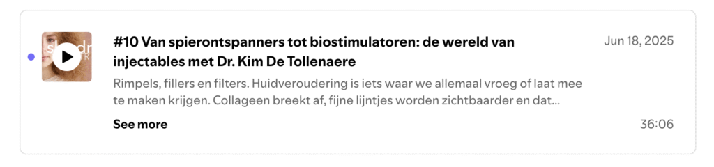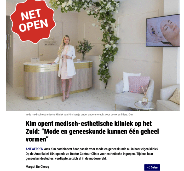 In de media VTM-reportage over chemische peelings 'Skindr' podcast met Dr. Kim Detollenaere op Spotify Krantenartikel in 'Het Laatste Nieuws' Krantenartikel in 'Het Nieuwsblad'